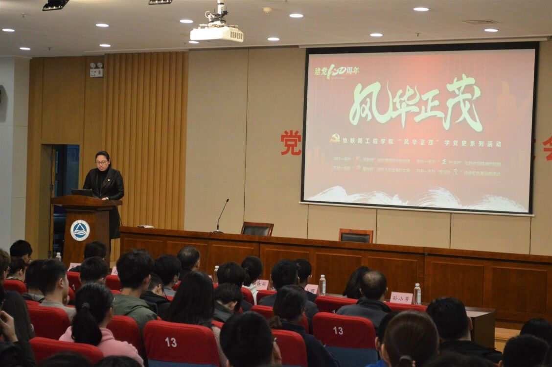 3月23日,正值中国共产党百年华诞倒计时100天,物联网工程学院党史学习教育动员大会暨“风华正茂”学党史系列活动第一讲在图书馆三楼报告厅举行。学院全体党委委员、教工党支部书记、全体学生党员参加活动。马克思主义学院唐忠宝教授受邀担任主讲嘉宾。活动由学院党委副书记、副院长孔丽丹主持。