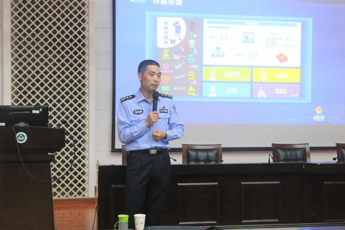 首先,刘惠亮以近期高校受诈骗人数较往期激增的数据向同学们阐述了开展大学生安全教育的重要性。他指出,互联网的发展深刻改变了我们的生产生活和学习方式,给人们带来了极大的便利。同时,万物互联时代,人人都可以在网络上发布信息,一些不法分子也利用网络进行诈骗等违法活动。刘惠亮通过阐述通讯网络诈骗的定义及基本特征,向同学们普及了“无抵押、低利率贷款”“兼职网络刷单”“点击领红包”“网络交友”“裸聊”等诈骗类型的作案方法。他指出,骗局精心设计,骗术层出不穷,在校大学生社会经验较少,阅历不深,往往更易受骗,对其学业生活和身心健康都会产生严重影响。