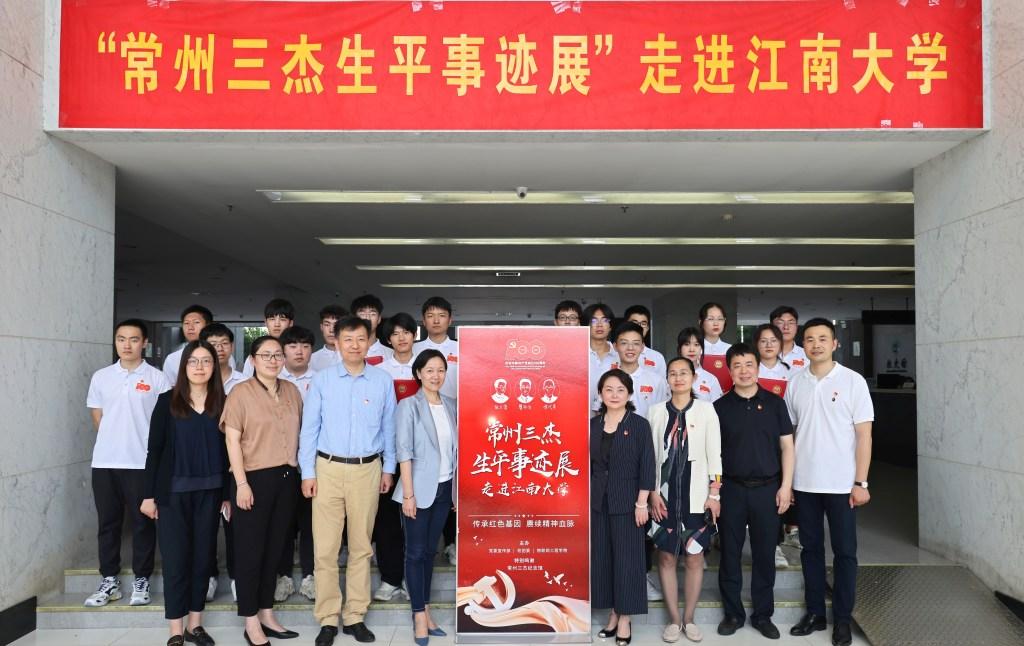 系列活动之一的常州三杰生平事迹展开幕仪式在图书馆一楼展览厅举行。物联网工程学院瞿秋白特称团支部的团员以诗歌朗诵《江南一燕 诸夏怀霜》为此次活动拉开了序幕。黄明彦与程捷音为“常州三杰生平事迹展”走进江南大学揭幕。在黄明彦的导引下,在场师生一起参观了“常州三杰”的生平事迹展,去聆听和感受革命先辈的奋斗故事和赤诚初心。事迹展将在学校展出1个月,瞿秋白特称团支部学生担任讲解,面向全校党支部、团支部开放讲解预约。