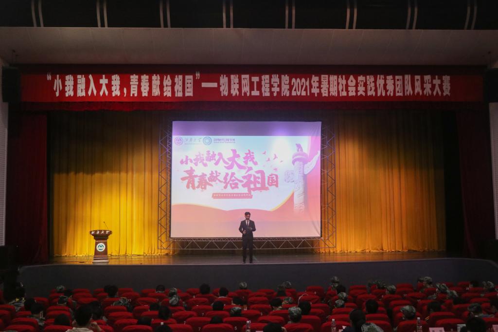 近日,“小我融入大我,青春献给祖国”——物联网工程学院2021年暑期社会实践优秀团队风采大赛在文浩馆观众厅成功举办。物联网工程学院党委副书记、副院长孔丽丹,辅导员杨兵、屈跃宽、张圆、沈滔,学生会执行主席张旭航及相关团队负责人,2021级全体新生参加活动。
