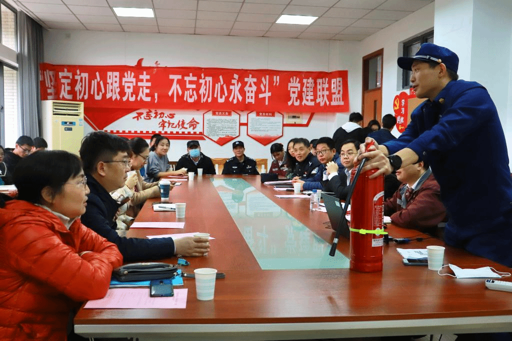 会上,首先由金城路派出所消防支队交通治安消防大队消防员丁星方为现场人员介绍了灭火器、消火栓等常见消防设备的使用方法及注意事项,并讲解了居家防火知识,回答了现场人员的消防相关问题。随后,全体人员共同学习了第十九届六中全会公报,并分享了各自的观看心得。接着,各党支部成员围绕“三走进”积极探讨党建合作,探索搭建党建桥梁、强化党建关系的有效途径。