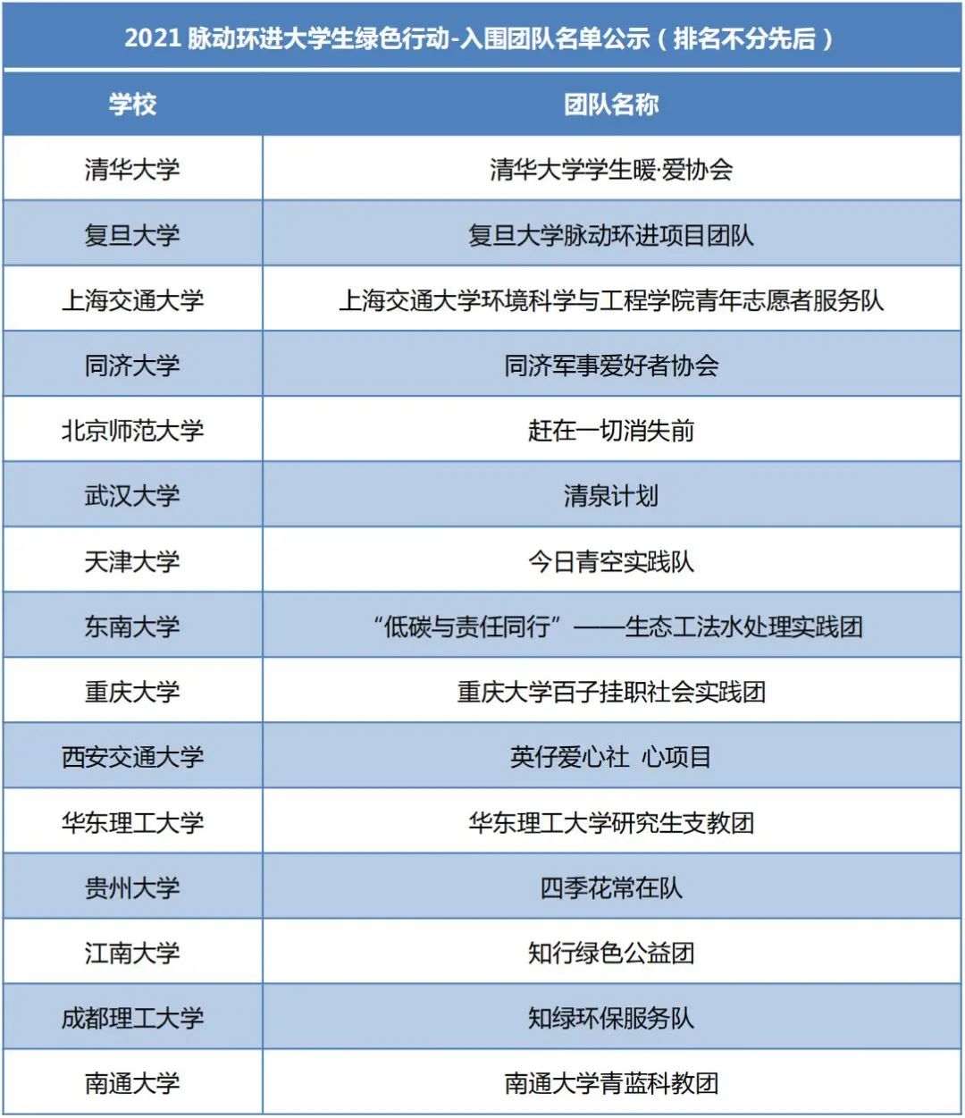 2021年“美丽中国,青春行动”脉动环进大学生绿色行动由知行计划、中国光华科技基金会、达能中国饮料联合发起,该活动积极响应共青团中央“美丽中国,青春行动”号召,围绕资源节约议题,鼓励大学生开展“绿色工坊”“绿色行动”,引导大学生群体带动社会共同助力生态文明建设,推进绿色可持续发展,共建美丽中国。本次活动自4月启动以来,来自全国各大高校的150支大学生团队以“水资源保护”“包装物的再回收利用”“闲置物品再回收利用”等为主题纷纷发起绿色环保行动。