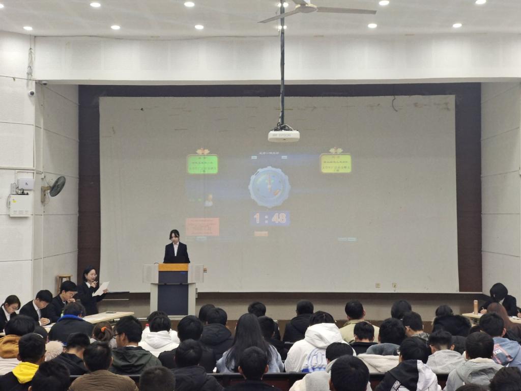 为培养大学生的思辨能力,开阔视野,在辩论中找准自我定位,尽快适应大学生活,物联网工程学院2021年“新生杯”辩论赛如约而至。自9月份启动以来,经过小组赛、半决赛等两个多月的紧张角逐,来自自动化2105班的“可恶又要早八队”和物联网2102班的“树上的鸟儿成双队”从14支参赛队伍中脱颖而出,成功晋级决赛。决赛于11月26日在第一教学楼1C109教室举行。学院分团委副书记杨兵,学院辩论社指导老师屈跃宽,新生辅导员张圆、沈滔,辩论社社长王国民、陈相廷及200余名2021级学生参加本次活动。