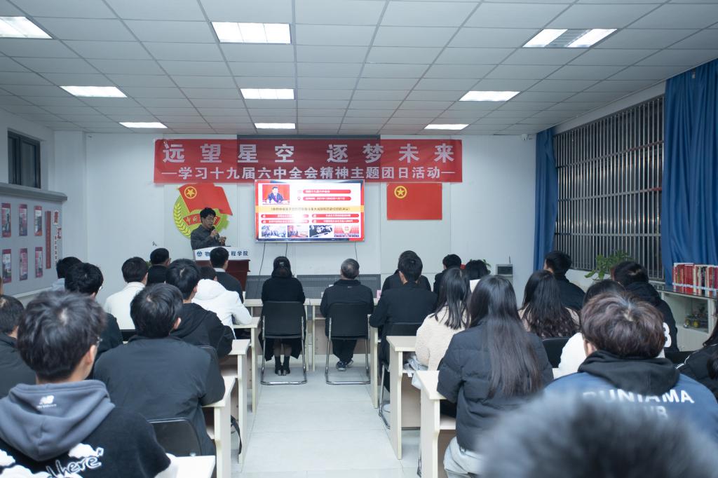 四个团小组的分享,引起了同学们深刻的思考和强烈的共鸣。作为专题组织生活会的重要学习内容,会前支部团员也通过“青年大学习”“中国青年报”等途径深入学习了十九届六中全会精神。会上团支书李明昌分享了他的学习心得,他讲到在党的十九届六中全会通过的《中共中央关于党的百年奋斗重大成就和历史经验的决议》,向我们展示了党的百年奋斗光辉历程,正是中国共产党不忘初心、牢记使命,永远奋斗的历史担当,才实现了中华民族从站起来,富起来到强起来的伟大飞跃。