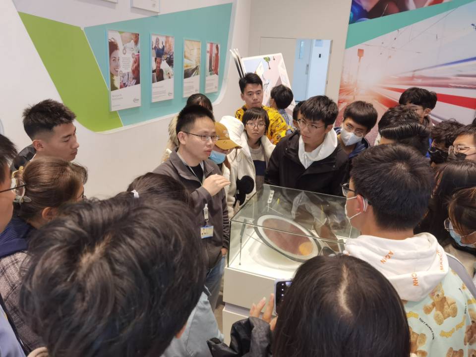 接着,营员们来到了英飞凌新厂区,参观了英飞凌(无锡)的部分技术产品,包括晶圆技术、射频晶体管、中功率放大器等。在工程师的介绍中,营员们深入了解了芯片的生产工艺和流程,特别是芯片后道封装测试方面的技术知识。在介绍中,企业工作人员也表达了半导体行业对人才的渴求。他讲到,作为半导体行业迅速发展的大国,我国未来对半导体行业的支持会也来越大,在“智能化”的未来,芯片与半导体材料的需求也会越来越广泛,人才是第一资源,创新是第一动力的发展理念也将越来越被重视,期望同学们能够投身到社会发展需要的科技领域中。