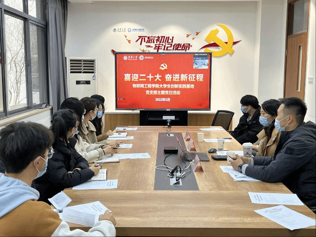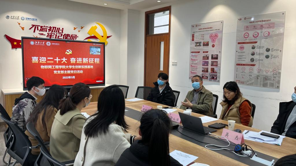3月19日,物联网工程学院大学生创新实践基地党支部举办了一次主题为“我在支部讲奋进”党日活动,支部全体党员通过线下线上方式参加活动,学院党委委员、院长谢林柏共同参加本次党日活动。