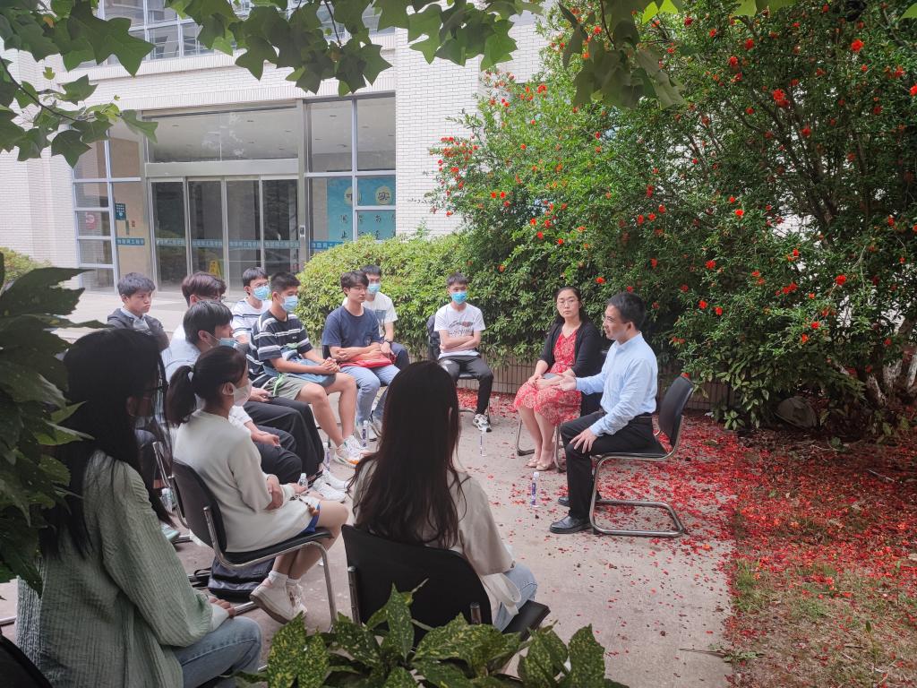 互动环节中,学生们积极提问、各抒己见,与院长们展开了充分、热烈的对话与交流。“选择考研还是就业?”“考研如何择校择导师?”“家庭困难生是否适合追求高学历?”“如何平衡学习和科创的关系?”,老师们聚焦学生们提出的学涯规划、职涯发展方面的问题,结合个人的学习成长经历和身边生动的案例,一一耐心解答。“大家要积极主动用好身边的资源,无论是院长还是专业老师,都非常乐意跟同学们进行面对面的交流,随时欢迎大家来互动。”活动最后,老师们发出了诚挚的邀请。