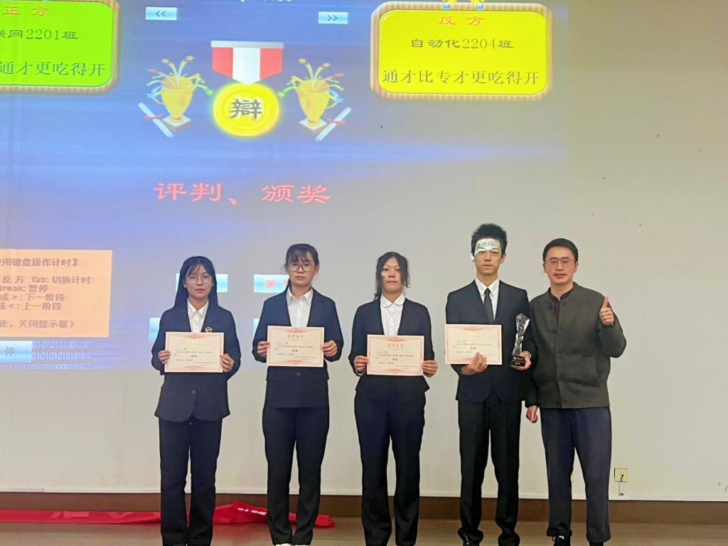 近日,为培养大学生的思辨能力,在辩论中找准自我定位,尽快适应大学生活,物联网工程学院2022年“新生杯”辩论赛决赛在第一教学楼1C109教室圆满结束。物联网工程学院2022级辅导员王涛、曾磊,辩论社指导老师屈跃宽,校辩论队队长金彧,各学院辩论社负责人及200余名2022级本科生参加本次活动。