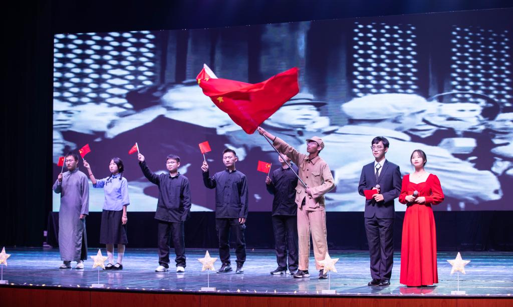 第二篇章,满芯欢喜,热爱可抵岁月长。艺术团话剧部和自动化2205班携手带来的话剧《破晓》,通过错位时空的镜头展现了那时五四运动与如今蓬勃繁荣的画面,展示青年为祖国美好未来奋斗的精神风貌;艺术团舞蹈部的表演《要你管》挥洒青春的魅力,舞曲的律动将全场点燃;艺术团器乐部的演奏《青花瓷》,通过葫芦丝、古筝、小提琴、钢琴等多种器乐的合奏将中国传统文化与现代流行文化巧妙融合,为现场观众带来听觉盛宴。艺术团声乐部的歌曲《最美的太阳》以优雅的嗓音传递青春正能量,引起了观众的共鸣。