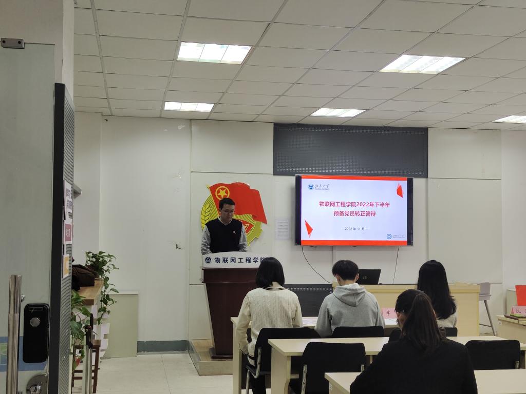 为进一步贯彻落实学生党员发展“三投票三公示一答辩”实施办法,提高学生党员发展质量,提升学院学生党建工作标准化规范化水平,11月23-24日,物联网工程学院2022年下半年学生预备党员转正答辩会在学院C121举行。答辩会分两场进行,学院全体辅导员、各党支部书记、支委担任答辩组评委,李天宇等35名预备党员参加答辩,各支部党员代表共同参加了本次活动。