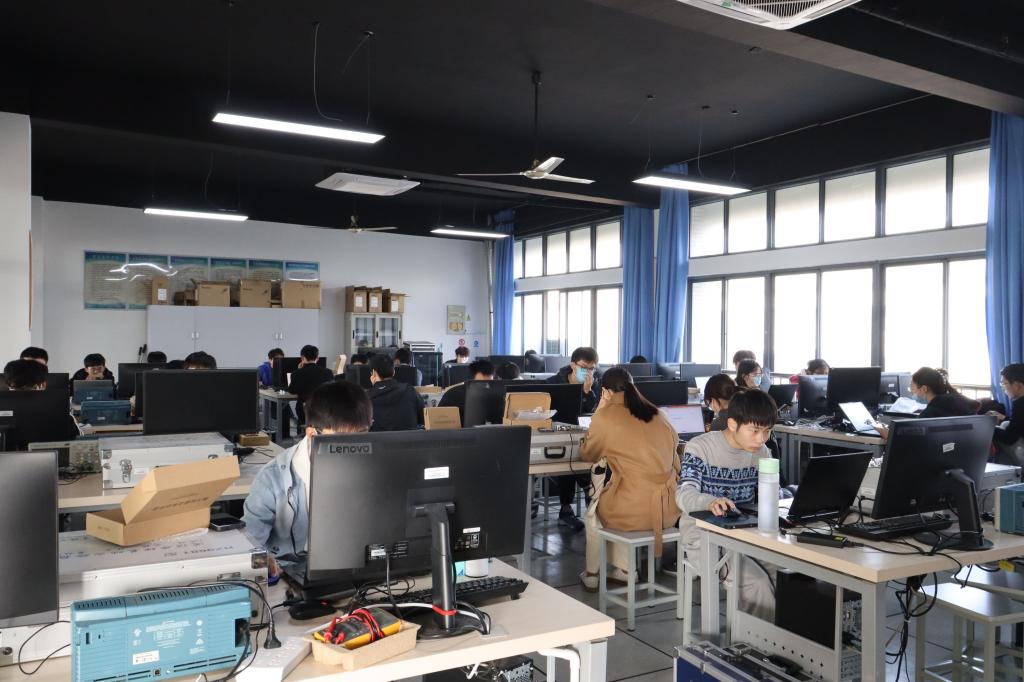 物联网工程学院高度重视本次大赛的组织工作,为迎接今年的省赛和国赛,自2022年下半年便开始着手准备,针对电子类赛道和和软件类Python赛道积极策划举办校内选拔赛和集训营。依托大学生科技协会和电子设计俱乐部平台,组成以冯伟、汤泽等为主要指导老师,以段勤硕、苏春宝、沈熙、邓净雨等为学生指导员的电子类指导团队,组织举办江南大学首届电子信息技术大赛;依托数据赋能俱乐部,组成以罗海驰、倪雨青等为主要指导老师的软件组(Python)指导团队,组织举办江南大学首届Python编程竞赛。两项竞赛共有来自全校的500余名同学报名参赛,指导团队分别在嵌入式设计与开发、单片机设计与开发、EDA设计与开发、Python程序设计等方面,针对硬件工程能力、语言编程能力、算法知识学习等开展多次集中培训,专门采购模拟竞赛平台,进行多次线上模拟备赛。通过组织校级竞赛,选拔出100余名种子参赛队员,每周开展两次集中拔高训练营,由指导团队分级分类开展一对一辅导,进一步提升了同学们的专业基础和参赛能力,营造了浓厚的学习和科创氛围。参训同学坚持集中学习、研究策略、总结经验,利用线上线下讨论平台的操作、程序的编译,一同研究历年省赛、国赛真题,进行模拟测试,在比赛中不骄不躁,沉着应战,展现出较高的专业素养和较强的心理素质。