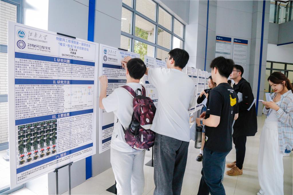 11月3日,物联网工程学院第一届研究生“唯实·惟先”学术创新论坛成功举行。论坛旨在营造开拓创新、交叉融合的校园学术氛围,为广大研究生搭建多渠道的学术交流平台。校党委研究生工作部部长、研究生院院长吴小俊,物联网工程学院党委书记耿向阳、院长栾小丽、党委副书记兼副院长孔丽丹、副院长梁峻阁等出席本次论坛。论坛吸引了学院300余位研究生广泛参与。
