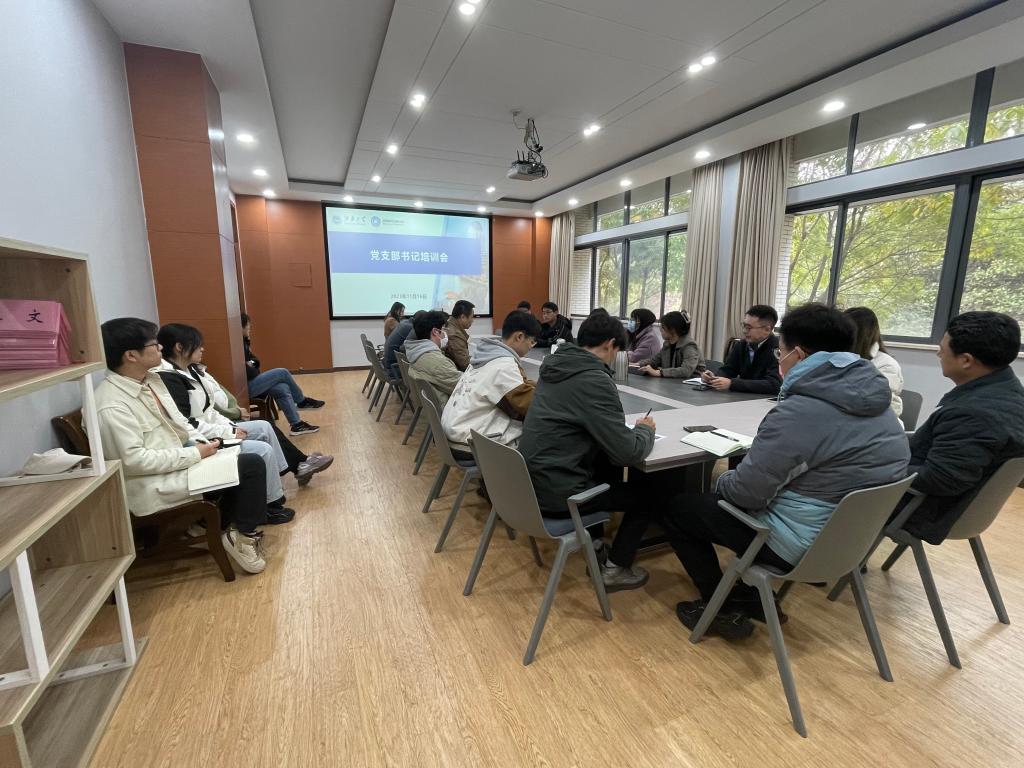 首先,糜海燕通报了本次师生党支部支委调整情况,就11-12月基层党支部专题组织生活和政治学习、基层党建工作专项检查、基层党支部换届选举等工作进行部署。随后,糜海燕根据《中国共产党支部工作条例》,结合日常检查、党委巡察等发现的相关问题,从党支部的基本任务、党支部的组织生活、《手册》填写规范几个方面进一步明确了支部组织生活开展和支部工作手册记录的规范性要求,对手册填写和党员发展材料中容易出现的问题进行了详细介绍。