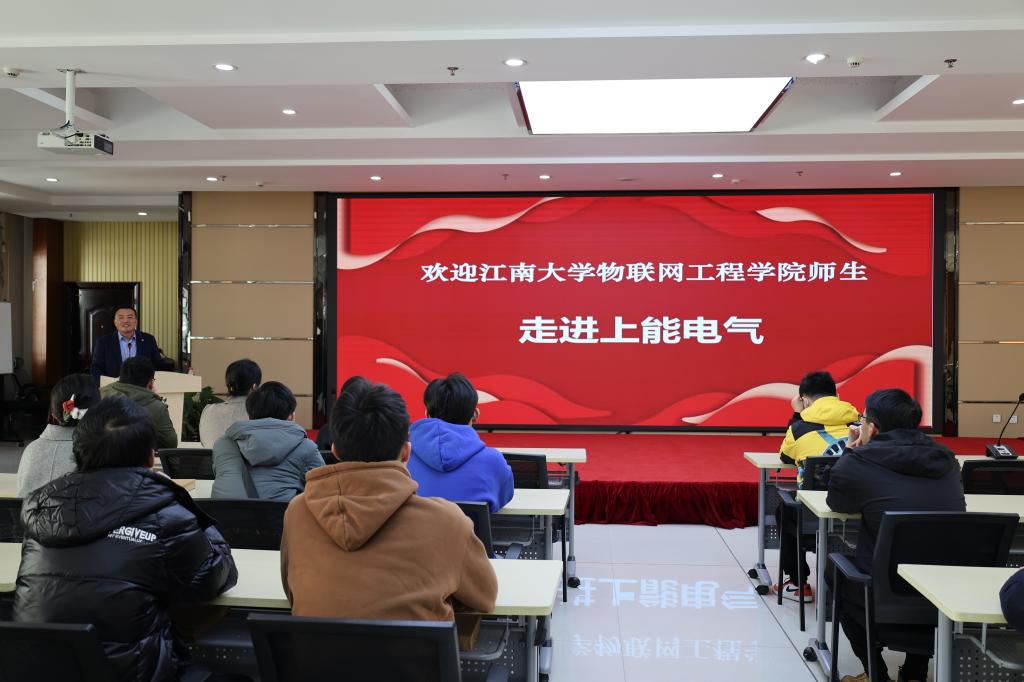 活动伊始,刘德龙对物联网工程学院一行表示欢迎,并围绕公司发展历程、产业范畴、技术发展以及人才培养等方面展开了详细的介绍。他指出,上能电气股份有限公司深耕电力电子变换和控制领域,业务涵盖光伏逆变器、储能系统、电能质量治理、电站开发等多个领域,致力于打造高效、安全、经济、绿色的电力能源。同时,鼓励青年学子扎实学好专业知识、明确未来努力方向、提前规划尽早准备。
