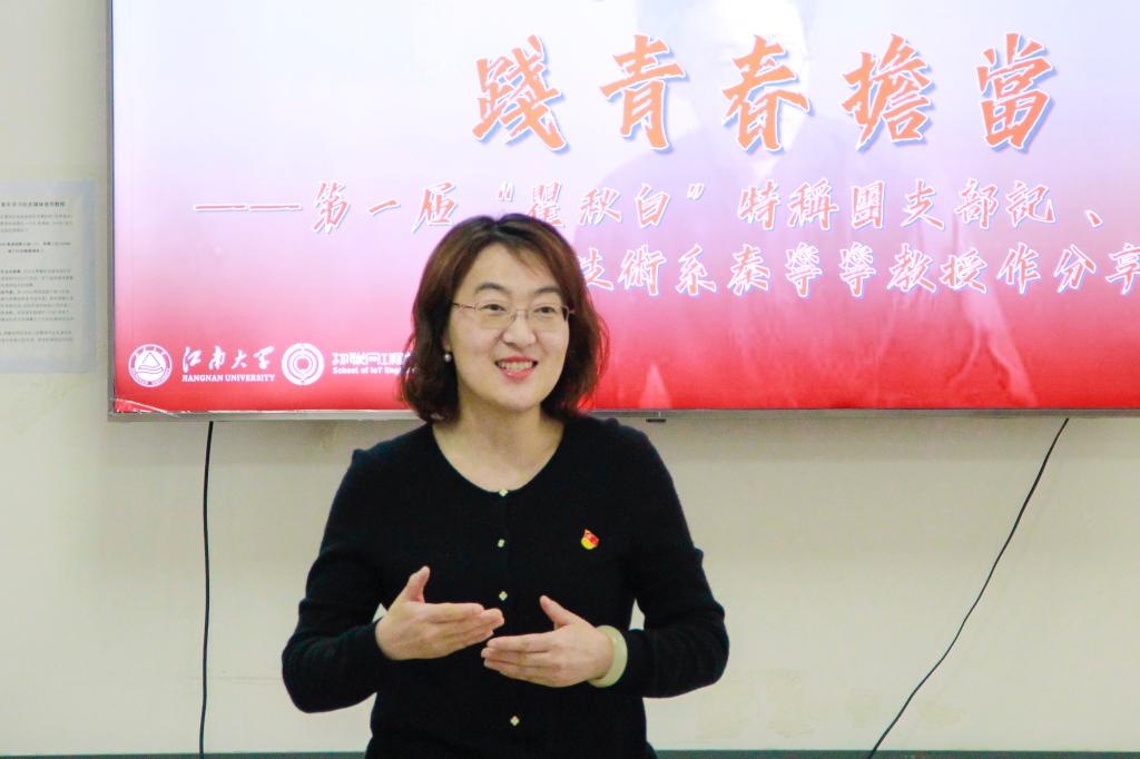 话•传承:践青春担当。秦宁宁从“瞿秋白”特称团支部的历史传承作为切入点,分享她与特称团支部的“不解之缘”,讲述了自己作为第一届“瞿秋白”特称团支部书记的工作经历。她号召同学们一是要勇敢接过青春接力棒,焕发青年活力,关键时刻挺身而出,承担起青年应有的责任与义务;二是要牢记“不忘来时路,方知向何方”,不忘“求真、求是、求实”的初心,脚踏实地,铸就自身辉煌;三是要深刻把握时代发展新形势,发扬创新精神,做一名想干事、敢干事、能干事的青年大学生。
