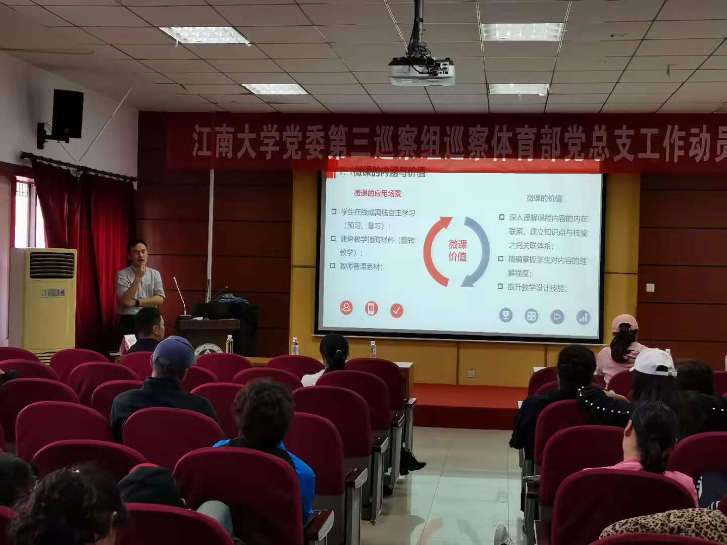 在信息化、技术化的时代背景下,高校体育教师不仅要有过硬的教学能力,同时还要利用先进的教学技术和手段来丰富教学资源,促进信息技术与实践教学深度融合,优化教学方式,提高教学质量。微课的设计与制作就是网络时代高校体育教师需要掌握的一项技能。11月18日下午,体育部邀请人文学院马志强教授在114会议室为体育部全体教师开展了一场“微课设计与开发”的讲座。讲座由潘凌云副主任主持。