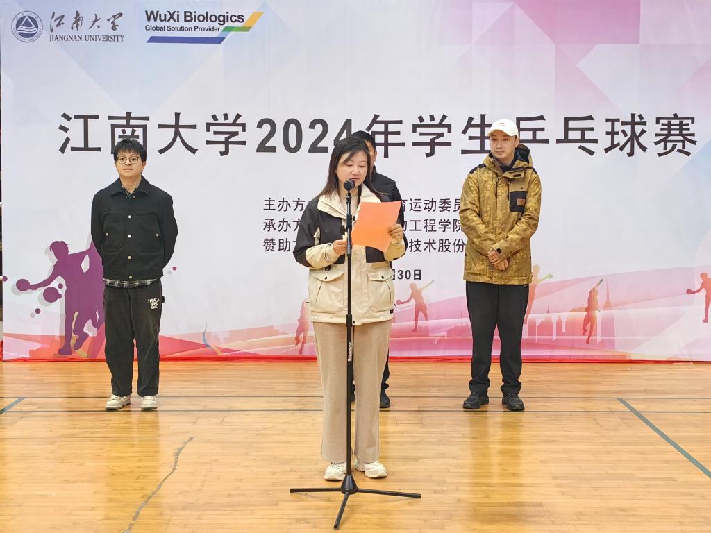 11月30日,江南大学2024年学生乒乓球比赛在蠡湖校区体育馆举行。本次比赛由江南大学体育运动委员会主办,生物工程学院承办,无锡药明生物科技股份有限公司赞助。全校19支代表队共计190名学生运动员参赛。体育部副主任赵来安,生物工程学院党委副书记、副院长林丹,大赛裁判长、体育部教师廉杰,生物工程学院辅导员周杰出席开幕式。