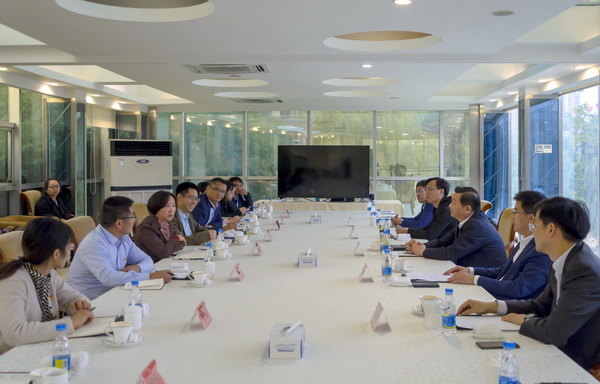 师生党员一行随后来到了泰州医药高新技术产业区,参观了泰州中国医药城会展中心、中科院大化所生物医药创新研究院、中国医药城疫苗工程中心等,并与泰州市委常委、泰州医药高新技术产业开发区党工委书记张小兵等领导座谈交流。座谈中,姚剑英简要介绍了学校概况和学院的发展建设情况,医药高新区的领导也介绍了泰州医药高新区的建设历程、现状及愿景,双方希望就人才培养、项目研发等方面进一步加强交流与合作。