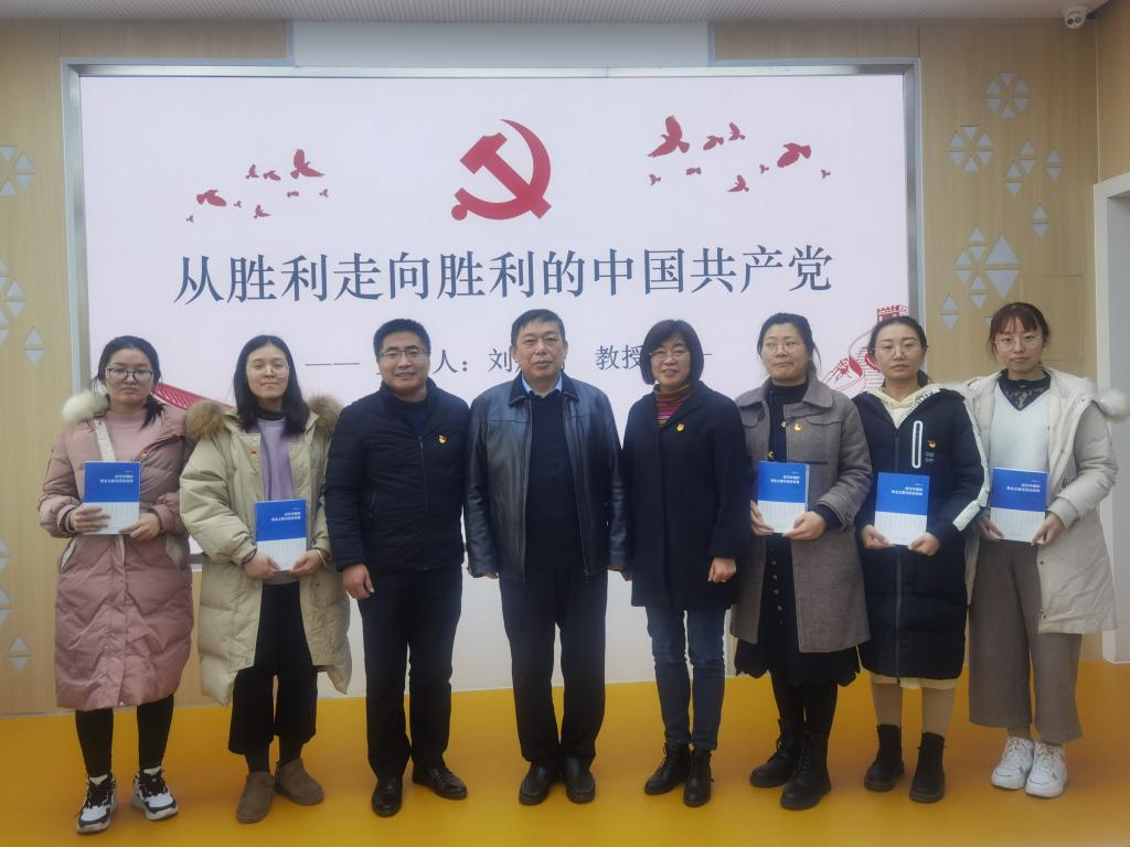 会议期间,学院邀请到马克思主义学院院长刘焕明教授为党员上了一堂题为《从胜利走向胜利的中国共产党》的党课。他带领全体党员回顾了中国共产党的发展历程,围绕四大历史启示,鼓励全体党员应甘于奉献、坚持为民、勇于纠错、严守纪律,为中国共产党的事业取得胜利而不懈奋斗。并将自己的著作《近代中国的民主之路与历史经验》签名授予学生党支部书记,勉励同学们不忘初心,一心向党,愈挫愈奋。