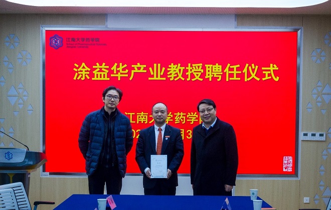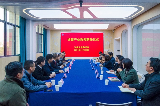 陈敬华简要介绍学院未来的发展规划,学院将依托江南大学轻工技术与食品科学两个一流学科的优势,在生物制药、生物疗法、医疗器械、纳米给药、营养与健康、精准营养与代谢等方面进行突破。希望通过校企合作加强学科建设和大健康产业人才的培养,希望产业教授能将行业、企业以及个人的成功经验传授给学生,解决校企脱节的矛盾,为学生就业以及个人发展提供引导。