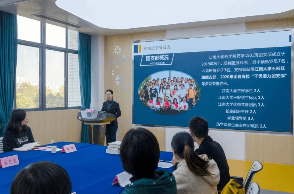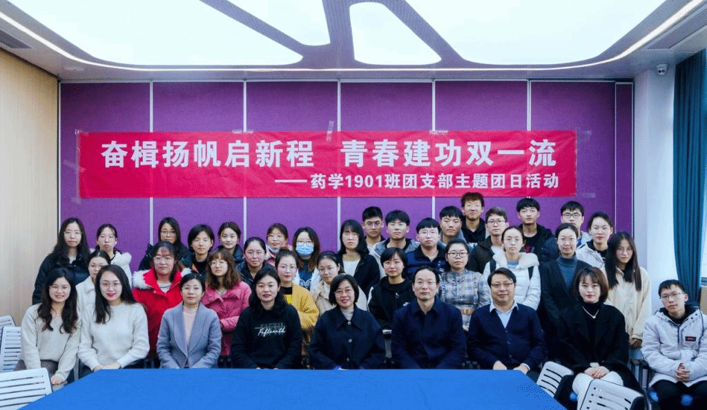 “这是一个团结奋进的班集体,这是一个温暖有爱的班集体,这是一个蓬勃向上的班集体……两年间,支部成员累计获奖学金62600元,获省级及以上学科竞赛9项,大创参与率 100%,支部获评江南大学五四红旗团支部、2020年全省高校‘千优活力团支部’等多项荣誉称号……”。12月23日下午在药学院306报告厅,“奋楫扬帆启新程,青春建功‘双一流’”药学1901班主题团日活动在班级风采宣讲声中拉开了序幕。参加活动的有江南大学党委常委、副校长堵国成,药学院党委书记陈霞雯,院长陈敬华,党委副书记、副院长蒋艳,副院长李会,分团委书记王珏,药学1901班班主任纪倩老师及全体同学。活动由团支书孙莹同学主持。