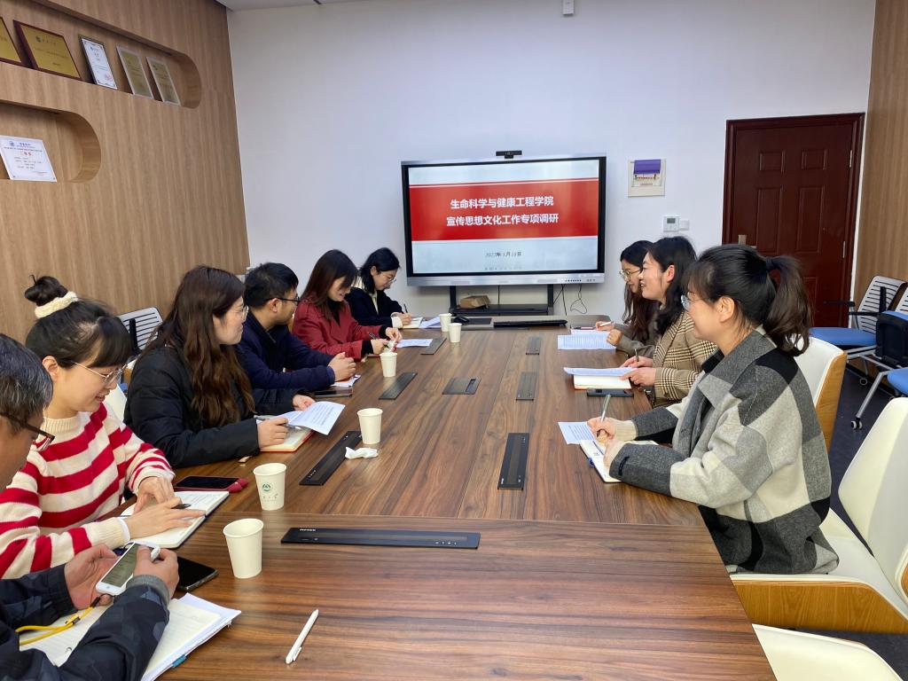 3月18日下午,校党委宣传部副部长梁建一行来生命科学与健康工程学院调研指导宣传思想文化建设工作,学院党委副书记副院长蒋艳、分团委书记兼学工办主任王珏、辅导员任学敏等参加了调研座谈会。