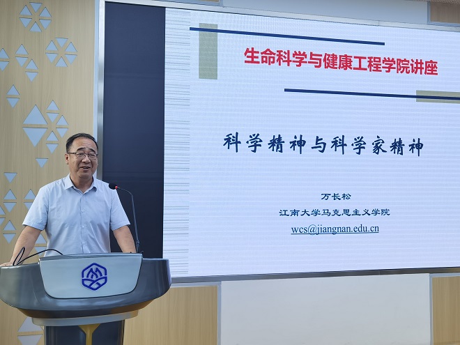 首先,马克思主义学院教授万长松为党员上了一堂题为《科学精神与科学家精神》的党课。从“什么是科学”“什么是科学精神”“什么是科学家精神”三个维度向我们阐释了由科学知识、科学思想、科学方法、科学精神构成的科学实质和内涵。他指出,新时代中国特色科学家精神就是要有胸怀祖国、服务人民的爱国精神,勇攀高峰、敢为人先的创新精神,追求真理、严谨治学的求实精神,淡泊名利、潜心研究的奉献精神,集智攻关、团结协作的协同精神,甘为人梯、奖掖后学的育人精神。万教授的讲解深入浅出、言语幽默,讲解过程旁征博引,全体与会师生受益匪浅。