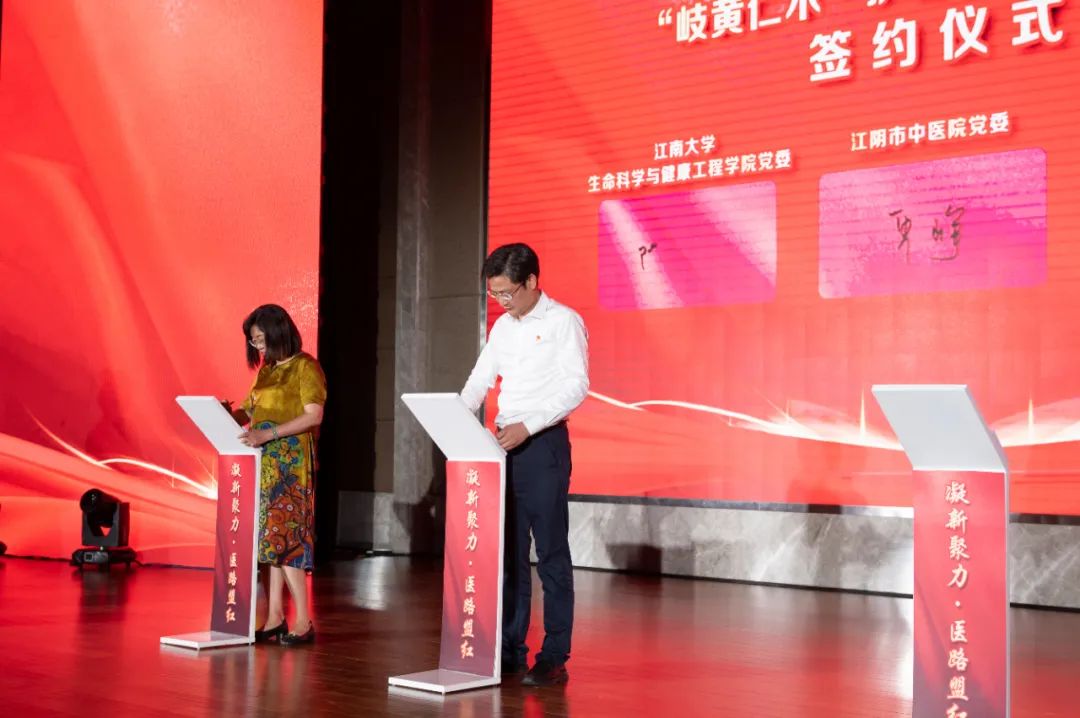 在“聚力共赢”院校企合作党建联盟签约仪式上,江南大学生命科学与健康工程学院党委与江阴市中医院党委共同组成“岐黄仁术·护佑健康”党建联盟。以共建共融为基础,以共享共赢为目标,坚持党建引领,围绕中心工作,立足服务群众,全面推进党组织建设工作。