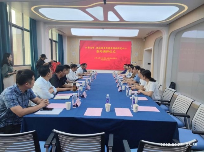 9月23日上午,江南大学-谯城区离岸健康科技研发中心签约揭牌仪式在江南大学生命科学与健康工程学院举行。谯城区委副书记、区长宋保众、亳州市农业农村局副局长王光凯、谯城区科技局党组书记、局长刘冬冬,江南大学生命科学与健康工程学院党委书记陈霞雯、院长陈敬华、副院长李会、史劲松教授、系统发酵与制药工程研究室教师代表等共同出席仪式,会议由史劲松主持。