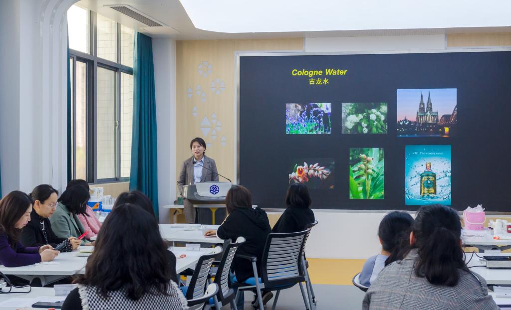 香水制作环节,女教工们根据自己的喜好,细心挑选主香调,然后进行香基称量和香精勾兑,随后按比例进行配比,耐心调制。迷人的香气,精致的瓶身,活动过程中通过闻香、调香,大家也在不知不觉中把工作和生活带来的压力和疲惫卸下,悠然享受午间时光,领略香水的优雅魅力。