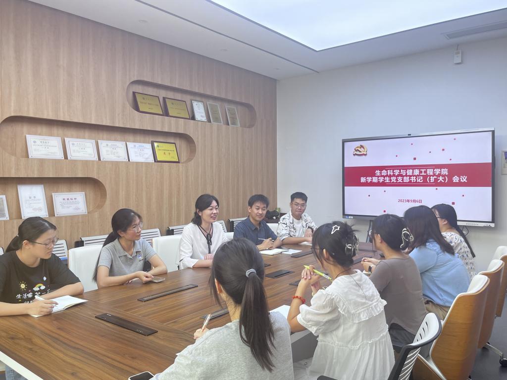 阔步新征程,奋力开新局。为进一步强化学院基层党组织的创造力、凝聚力和战斗力,提升学生党建工作质量,生命科学与健康工程学院于9月6日下午在学院305会议室召开新学期学生党支部书记(扩大)会议。院党委副书记兼副院长蒋艳、党建辅导员张世祺、各学生党支部书记、学生党务中心部门负责人参加此次会议。