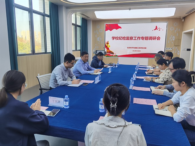 为深入推进全面从严治党向基层延伸,强化对基层党组织全面从严治党日常监督工作情况的了解掌握,11月2日,校党委副书记、纪委书记刘淼、校纪委监督监察室主任董霆一行赴生命科学与健康工程学院,在306会议室开展了纪检监察工作专项调研。会议由学院党委纪检委员、副院长李会主持,学院各教工党支部和学生党支部纪检委员参会。