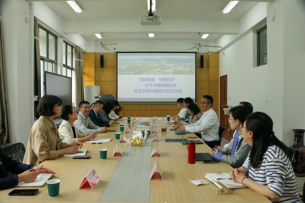 为深化党建引领事业发展,促进法学教育与法律实务融合发展,4月27日,法学院联合江苏崇宁律师事务所举办“党建铸魂 书香筑梦”共建及赠书活动。锡山区律师行业党委书记丁军武、党委委员毕鸣,江苏崇宁律师事务所主任张红岩、党支部副书记王晓岚,法学院党委书记陆秦、院长王君柏、党委副书记兼副院长胡博、副院长任卓冉,以及律师代表、师生党员代表30余人参加本次活动,活动由张红岩主持。