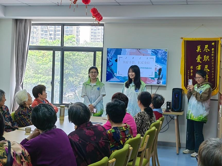 为关爱老年人健康,助力养老服务领域发展,法学院“益治青春”实践团于4月23日下午走进无锡市太湖街道梁南社区居家养老服务中心。此次活动吸引了20余名老人积极参与,团队为社区老人带来认知症的深度科普与温暖关怀。