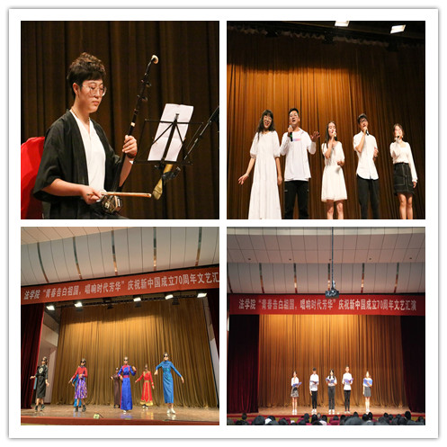 法学院全体师生借此次活动为祖国母亲70华诞倾情献礼,胡博老师独唱的《梅花赞》,吟唱了难忘的岁月,凝聚了对祖国母亲不变的热爱之情 ;王永南老师的葫芦丝独奏《今天是你的生日,我的祖国》《我爱你中国》,演绎了时代的激越,回荡着情怀不改的真。独特新颖的蒙古族舞蹈,合唱《无限》《我和我的祖国》和朗诵《在秋天,说出祖国的名字》更是表达了同学们对祖国母亲的热爱与祝福。此外,同学们还用舞蹈《别人家的小孩》张开了梦想的翅膀,用合唱《不忘初心》诠释了青春的气息,更是表达了他们将踏着新时代的浪潮,不忘初心,砥砺前行的坚定信念。