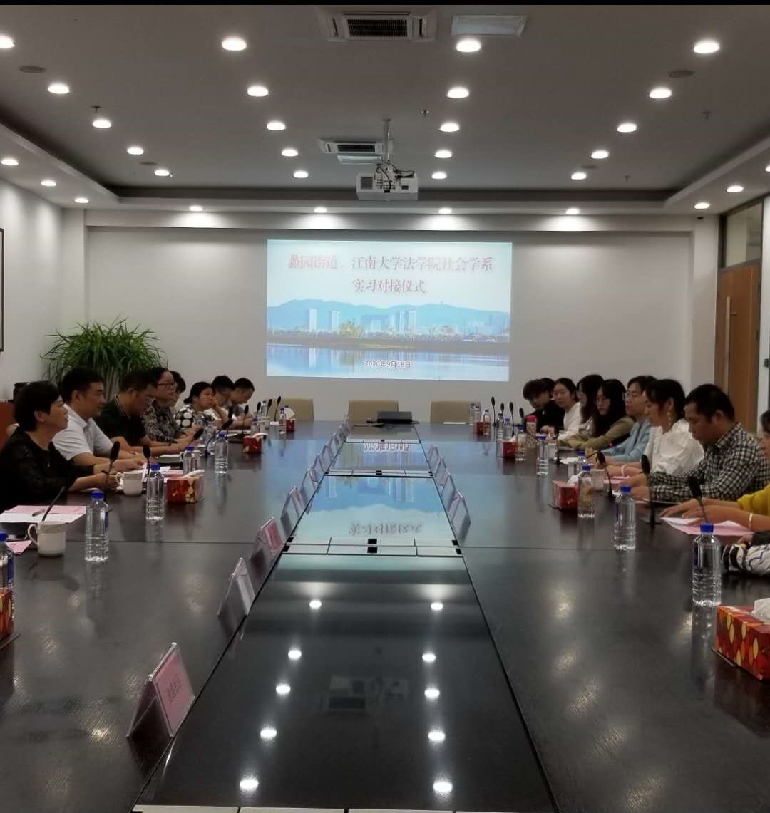 9月18日下午,法学院与蠡园街道开展大学生实习对接仪式。此次仪式由蠡园开发区社事局长李惠主持,蠡园街道党工委副书记、蠡园街道办事处主任王子健,蠡园开发区人社局长杨忠伟、江南大学法学院副院长叶敏、社会学系主任汪冬冬、实习督导曹菲博士以及蠡园街道各社区主任、28名实习大学生出席了此次活动。