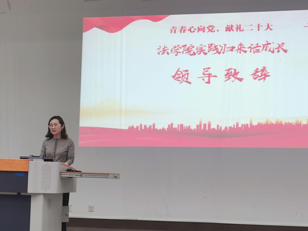 会议伊始,张慧琪进行致辞。首先,她回顾了法学院暑期社会实践活动相关情况,肯定了8支优秀社会实践团队“学思结合、学以致用”的突出表现。她表示,同学们围绕着“乡村振兴、基层治理、党史学习、环境保护”等主题,积极开展了访谈考察、实践调研、理论宣讲等形式多样、内容丰富的社会实践活动,真正做到了将专业知识应用于社会实践,让青春在全面建设社会主义现代化国家的火热实践中绽放了绚丽之花。同时,她殷切希望在明年的社会实践活动中可以看到更多属于同学们的鲜活身影和青春姿态。