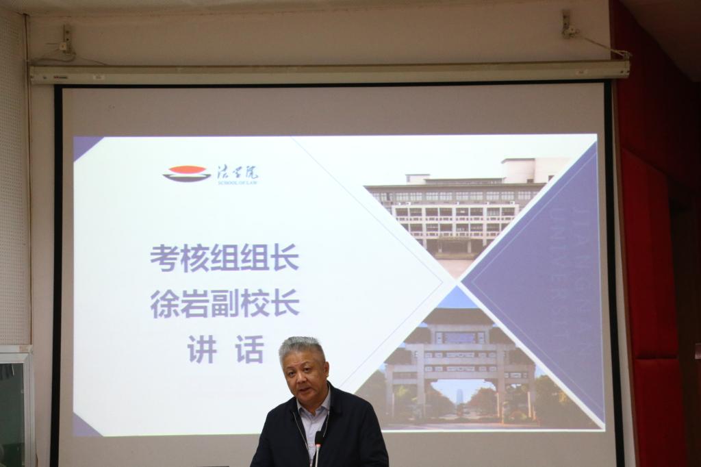 大会首先由徐岩作动员讲话。他肯定了法学院三年来取得的成绩和全院师生的努力。他从三个方面强调了本次考核的目的:一是全面检查学院三年任期目标完成情况,二是全面审视第七轮任期目标责任制的实施情况,三是全面了解领导干部的工作实效和师生工作、学习状况。他阐述了本次考核聚焦的四个方面:一是任期目标的完成情况,二是任期领导班子的工作状况,三是学院的工作创新和特色亮点,四是教职工对党政班子领导工作的认可。同时强调了此轮考核的变化点。