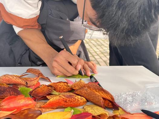一片树叶,一声问候;一树秋色,一墙温情。11月20日,恰逢“世界问候日”,法学院在浩苑和榴园宿舍区举办了“执笔拾秋色,以梦树青春”活动,让同学们相互问候、相互交流,在拾叶、思考、分享、传递的过程中倾诉内心,勇于表达。本次活动吸引了400余名同学参与,同学们纷纷传递自己的心愿树叶,将光秃的树干共同描绘成色彩缤纷的“心愿树”,见证了同学们最诚挚的问候和最美好的梦想。