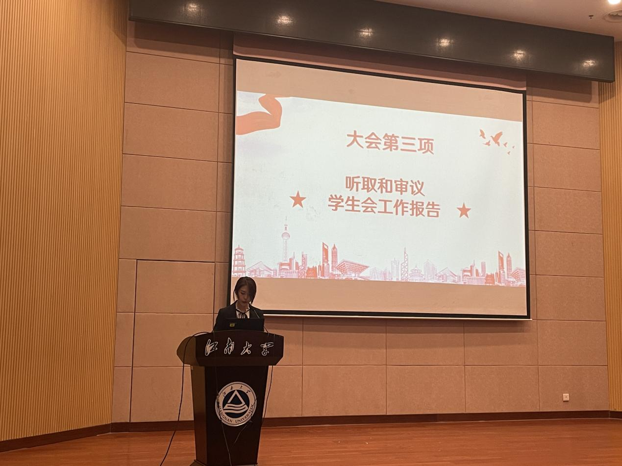 研究生会主席团成员梁宇作研究生会年度工作报告