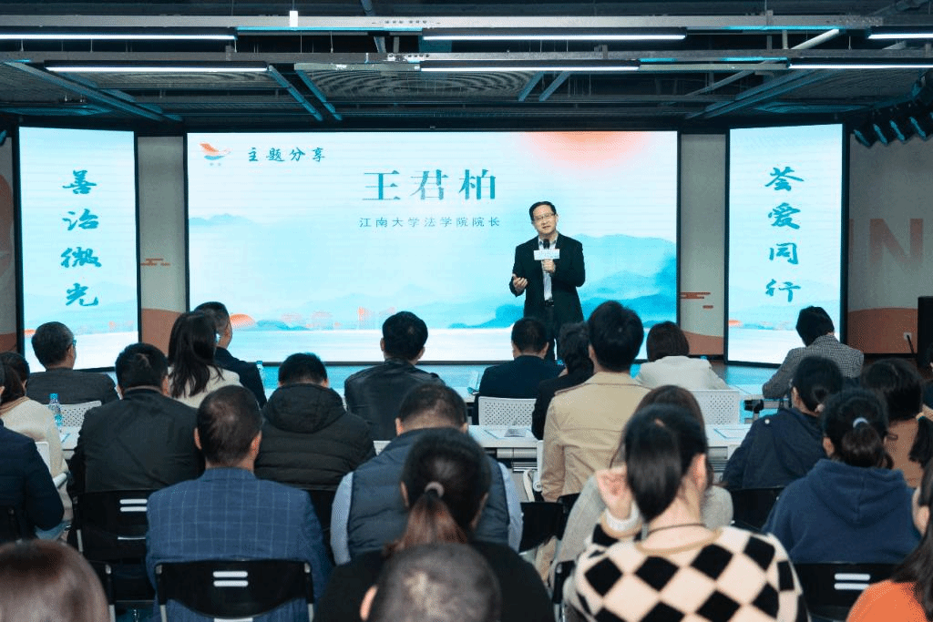 江南大学法学院院长王君柏教授对新安街道“治荟新安”社区治理品牌项目进行点评,并就《住房充沛时代的社区工作》主题进行分享。他强调,新安街道以“新安治荟发展基金”“治荟新安”社区治理创新品牌建设为抓手,充分发挥院校实践基地“资源链”和“智库力”,推动区域基层治理水平再上新台阶,为探索全面推进中国式现代化社区实践作出新贡献。