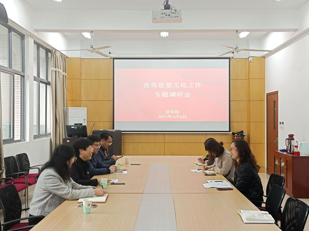 4月6日下午,党委宣传部部长李佳敏、融媒体中心主任兼党委宣传部副部长胡振宇一行来法学院开展宣传思想文化工作专项调研。学院党委书记陆敏芝,党委副书记、副院长张慧琪等参与调研交流。
