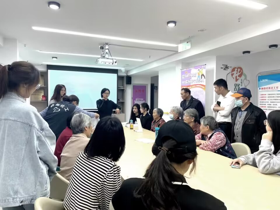 师生一行走进丽新社区居家养老服务站,李娟对丽新社区预防认知障碍项目建设情况进行介绍,讲解了预防老年人认知障碍的重要性,并展示了社工站的认知训练设备。在缪晶晶引导下,团队成员结对体验“图形记忆”“消除麻将”等趣味认知训练游戏,并进行了认知能力测试。体验结束后,团队成员共同交流了感受,李娟为同学们答疑解惑。