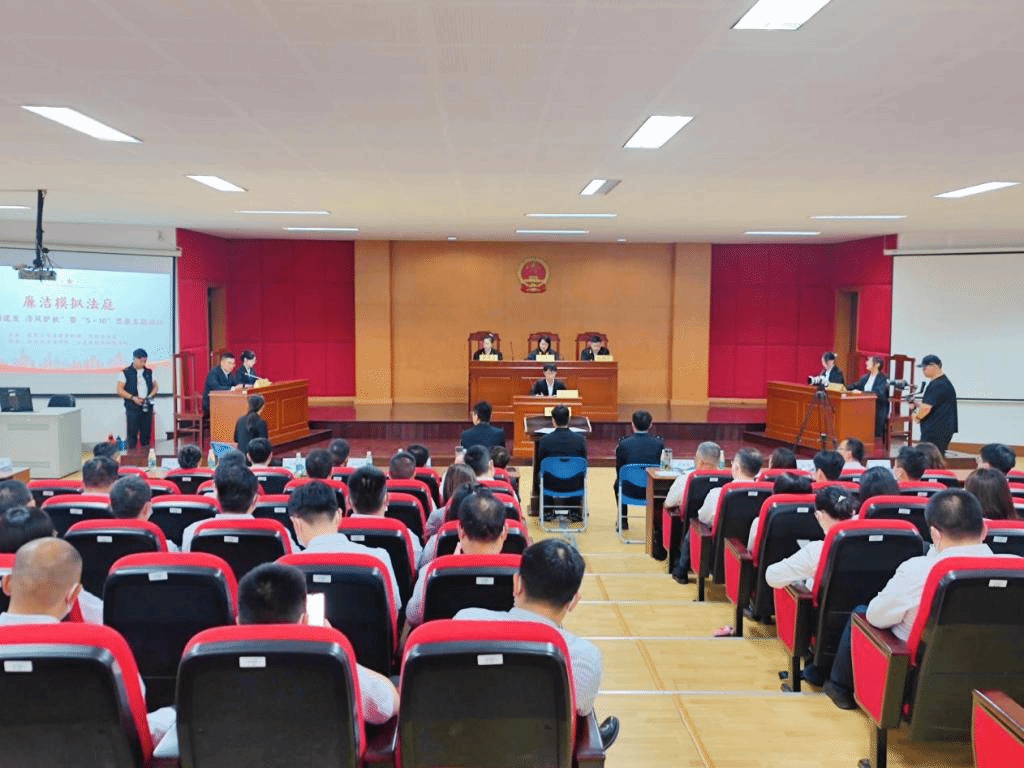 在模拟法庭法治宣传教育中,案件选取并改编“薛秀丽贪污罪、受贿罪”(案号:2020川0180刑初49号),法学院研究生分别饰演审判人员、公诉方、辩护人、被告人、证人等角色,庭审环节包括开庭准备阶段、法庭调查阶段、法庭辩论阶段、休庭期间、合议庭评议阶段以及宣判阶段。整个庭审过程流畅,程序设计规范,审判人员威严,控辩双方发言精彩,被告人真诚悔罪,展示出了庭审活动的威严与庄重。模拟法庭结束后,虞仕俊、邵建东作点评讲话。