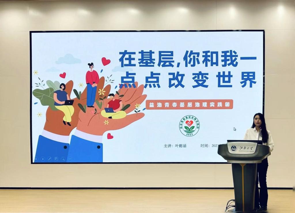 接下来,进行法学院2023年暑期社会实践项目大赛颁奖暨成果展示环节。法学院红粉笔支教团坚守“红心筑梦,粉笔传爱”的理念,将青春志愿的火种播撒到大山深处,为乡村振兴贡献蓬勃力量;益治青春基层治理实践团以“青春之我,助力中国之治”为行动理念,瞄准基层服务需求开展菜单式、定制化志愿服务,两支团队荣获特等奖;乡缘益青小分队探析乡村振兴视域下法治乡村建设现状,积极寻求其摆脱困境的出路,助力乡村振兴,荣获一等奖。情系桑榆实践团队秉承敬老爱老初心,关注老龄事业发展,以青春之力扬时代新风;问山实践团队通过实地调研,希望从教育、社会、政府三个维度探寻我国东部地区少数民族乡文旅发展途径及方向,两支队伍荣获二等奖;法“治”杀熟社会实践团队,网络化调研实践团,领航青春·司法社工实践团,三山六岳队,“益”心呵护、伴你“童”行实践团荣获三等奖。12支优秀社会实践团队分享了他们的宝贵经验,充分展现了法学院学子聚焦基层、关注民生的独特角度和善于践行真知,积极向上的精神风貌,给2023级新生树立了勇担社会责任、展现青年风采的榜样。