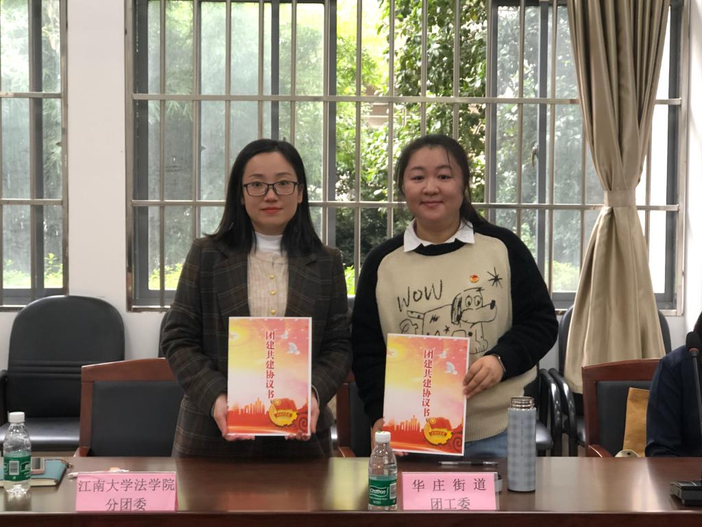 为进一步学习贯彻习近平新时代中国特色社会主义思想和党的二十大精神,增强校地融合,进一步凝聚青春力量,助力社会基层治理。江南大学法学院分团委与华庄街道团工委于11月22日下午开展“校地融合共发展,联学共建聚合力”共建签约活动。江南大学法学院分团委书记徐雅静,华庄街道党建工作指导站站长薛菲,华庄街道团工委副书记沈晴娴出席活动,街道基层青年代表、法学院学生代表参加活动。