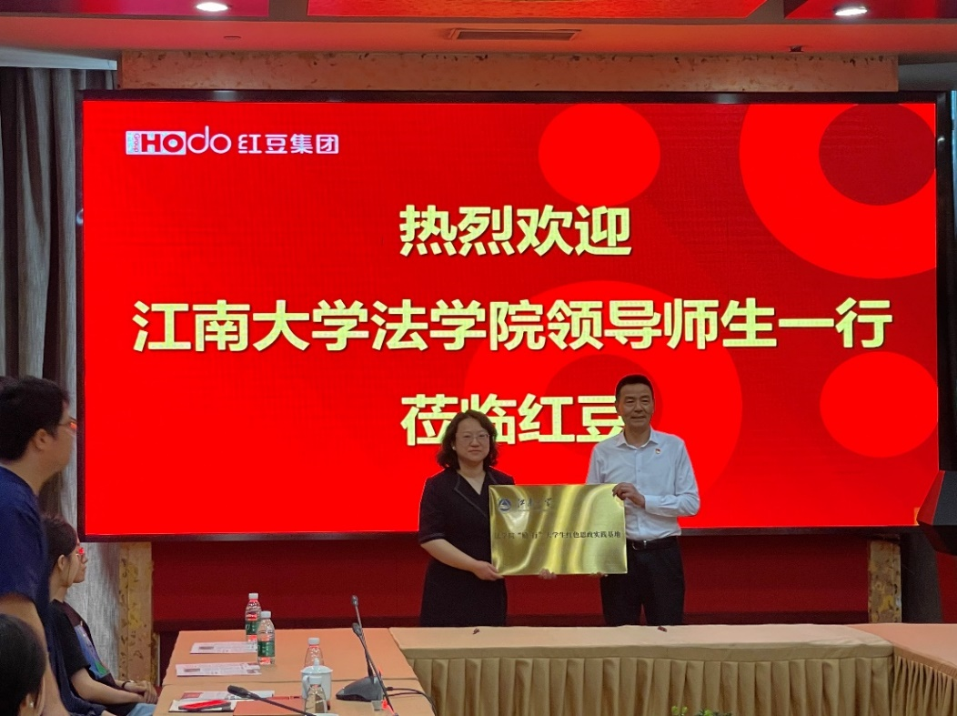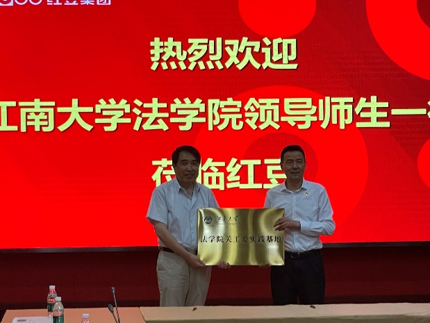 接着,举行了党支部共建签约仪式,由法学院社会学系教师党支部与红豆大学党支部共建、法学院研究生第一党支部与红豆集团法务与合规部共建。最后,胡博向红豆集团颁发“励•行”大学生红色思政实践基地铜牌、杨杰向红豆集团颁发法学院关工委实践基地铜牌。