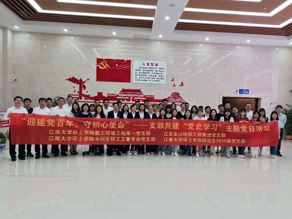 江苏金山环保工程集团是环境与土木工程学院董事会董事长单位,也是江南大学创新创业实践基地和民营企业党建研究中心。此次支部共建主题党日活动充分发挥党建的核心引领作用,进一步推动了党建工作与时俱进、创新发展,为院企双方进行科研项目研发、科技成果转化、人才培养奠定基础,引导全体党员知史爱党、知史爱国,做到常怀忧党之心、为党之责、强党之志,弘扬和传承党的伟大精神。
