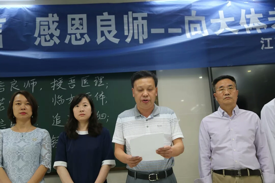 “大体老师”是医学生对学习解剖学的尸体标本的尊称,他们为医学事业做出了伟大的贡献。为了表达对“大体老师”的缅怀与哀思,医学院于2019年9月10日下午在学院楼D209举行了“大爱无言,感恩良师”局部解剖学开课暨大体老师致礼仪式。医学院党委书记周建,医学院院长陈永泉,副院长赵鹏、陈雪,医学院院长助理兼公卫系主任程洋,院长助理兼基础医学系主任吴国胜,院长助理兼护理系主任蒋玉宇,院长助理兼实验中心主任、工会主席冯磊,辅导员以及基础医学系教师代表等出席了本次仪式。仪式庄严肃穆,由医学院党委副书记、副院长奚晓岚主持。