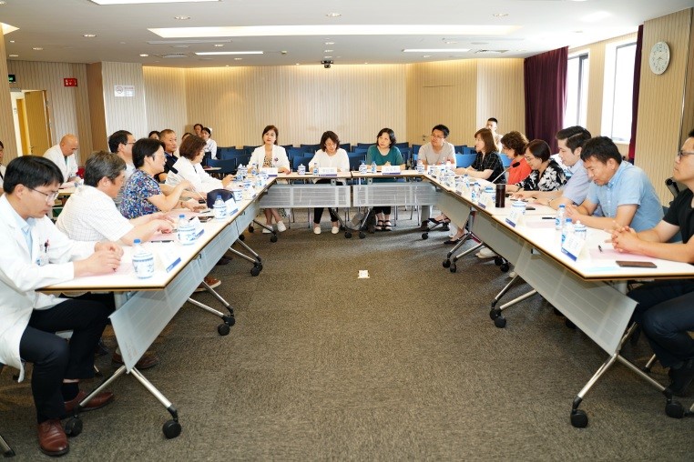 7月14日下午,医学院党委书记向琪一行赴上海市同仁医院调研交流。院长马鑫,党委副书记奚晓岚,副院长赵鹏、陈雪及系部主任等老师一同参加调研座谈会。上海市同仁医院党委书记蒋利、院长马骏、副院长陶琨、党委副书记郑涛、虹桥国际医学研究院执行院长郭锡熔等陪同调研。座谈会在同仁医院行政楼602会议室举行。